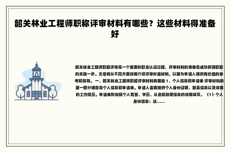 一、韶關(guān)林業(yè)工程師職稱(chēng)評(píng)審材料有哪些
