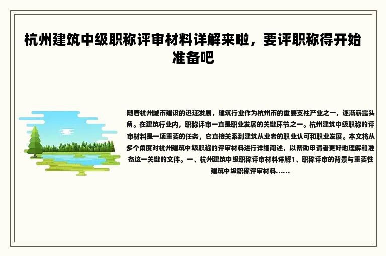 一、杭州建筑中級(jí)職稱評(píng)審材料詳解