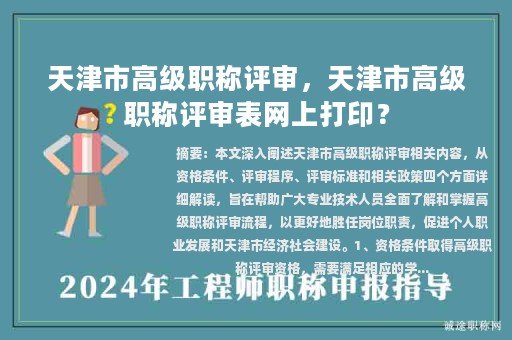 摘要:本文深入闡述天津市高級(jí)職稱評(píng)審相關(guān)內(nèi)容,從資格條件、評(píng)審程序、評(píng)審標(biāo)準(zhǔn)和相關(guān)政策四個(gè)方面詳細(xì)解讀,旨在幫助廣大專業(yè)技術(shù)人員全面了解和掌握高級(jí)職稱評(píng)審流程,以更好地勝任崗位職責(zé),促進(jìn)個(gè)人職業(yè)發(fā)展和天津市經(jīng)濟(jì)社會(huì)建設(shè)。