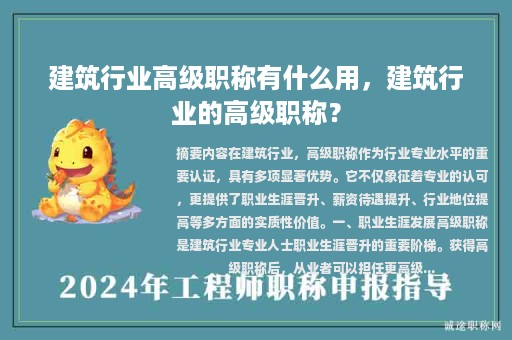 在建筑行業(yè),高級(jí)職稱作為行業(yè)專業(yè)水平的重要認(rèn)證,具有多項(xiàng)顯著優(yōu)勢(shì)。它不僅象征著專業(yè)的認(rèn)可,更提供了職業(yè)生涯晉升、薪資待遇提升、行業(yè)地位提高等多方面的實(shí)質(zhì)性價(jià)值。