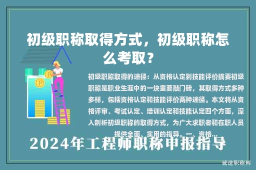 初級(jí)職稱是職業(yè)生涯中的一塊重要敲門(mén)磚,其取得方式多種多樣,包括資格認(rèn)定和技能評(píng)價(jià)兩種途徑。本文將從資格評(píng)審、考試認(rèn)定、培訓(xùn)認(rèn)定和技能認(rèn)定四個(gè)方面,深入剖析初級(jí)職稱的取得方式,為廣大求職者和在職人員提供全面、實(shí)用的指導(dǎo)。